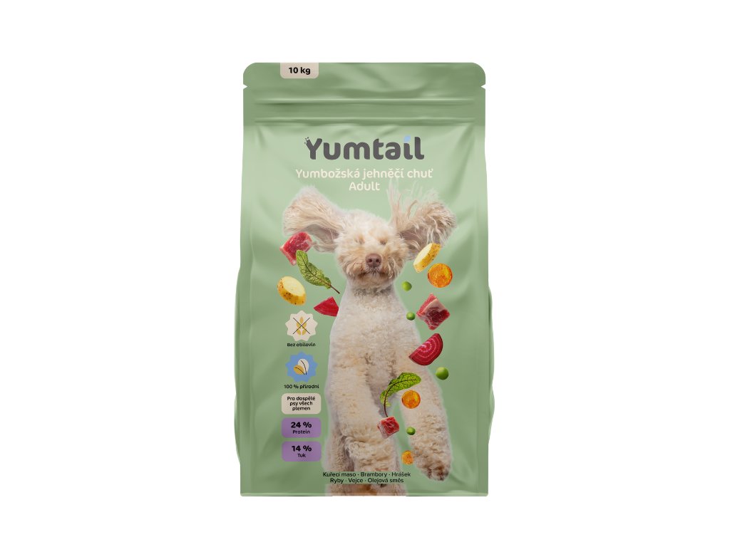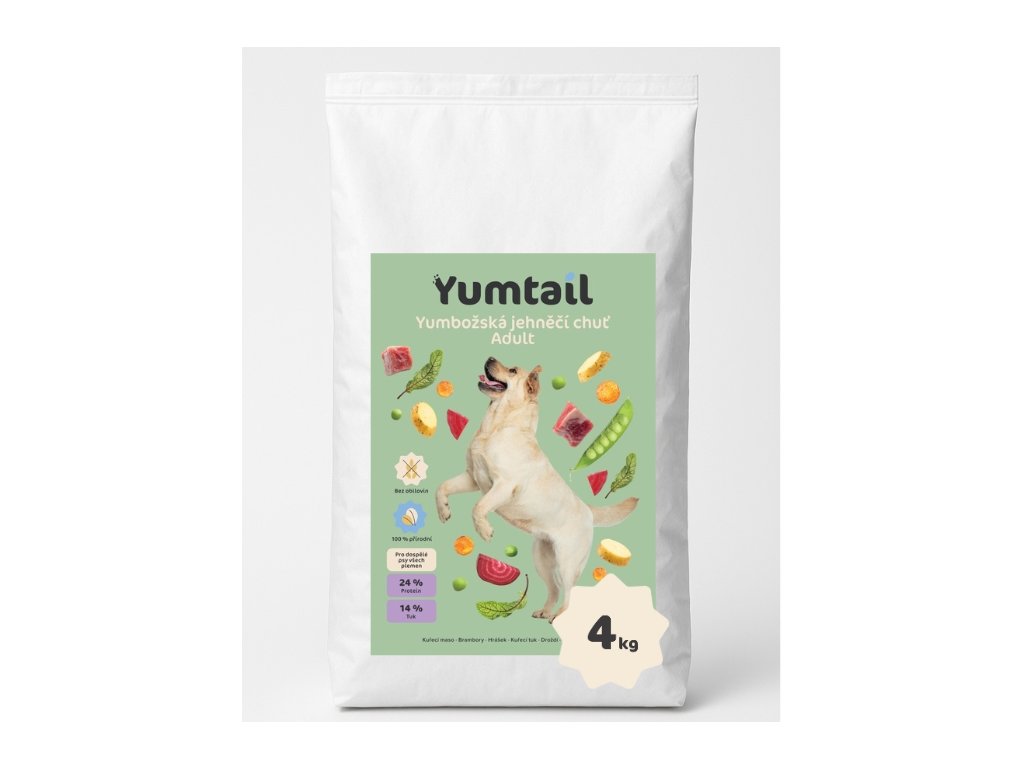 Yumbožská jehněčí chuť Adult je kompletní prémiové krmivo pro dospělé psy všech plemen, vytvořené speciálně pro potřeby citlivých a aktivních psů. Obiloviny jsou nahrazeny bramborami, což eliminuje riziko lepkové intolerance a podporuje snadné trávení. Základem receptury je 23 % kvalitního dehydrovaného jehněčího masa doplněného o hrášek a 20 % brambor, které dodávají krmivu vyvážený obsah bílkovin (24 %) a tuků (14 %). Granule obsahují důležité vitamíny (A, D3, E) a minerály (železo, jód, měď, mangan, zinek, vápník a fosfor), které přispívají k silné imunitě, zdravé srsti, pevným kostem a celkové vitalitě psa. Díky přidané řepné vláknině a pivovarským kvasnicím podporují také zdravé zažívání. Krmivo je konzervováno pouze antioxidanty a látkami povolenými pro použití v potravinách, takže se můžete spolehnout na jeho bezpečnost i kvalitu.